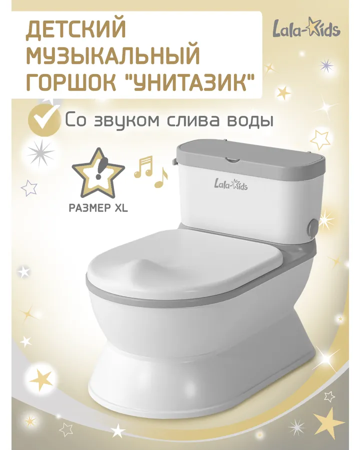 Горшок LaLa-Kids Горшок Унитазик XL музыкальный серый