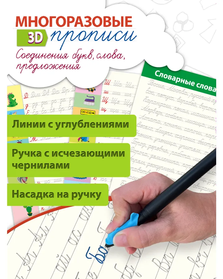 5Многоразовые 3D-прописи Дрофа-Медиа Дрофа-Медиа Соединения букв. Слова. Предложения 4419Интересная задумка. Плотные карточки с бороздками позволяют правильно обводить буквы.