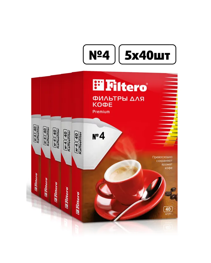 Комплект фильтров Filtero для кофеварки №4/200шт белые Premium