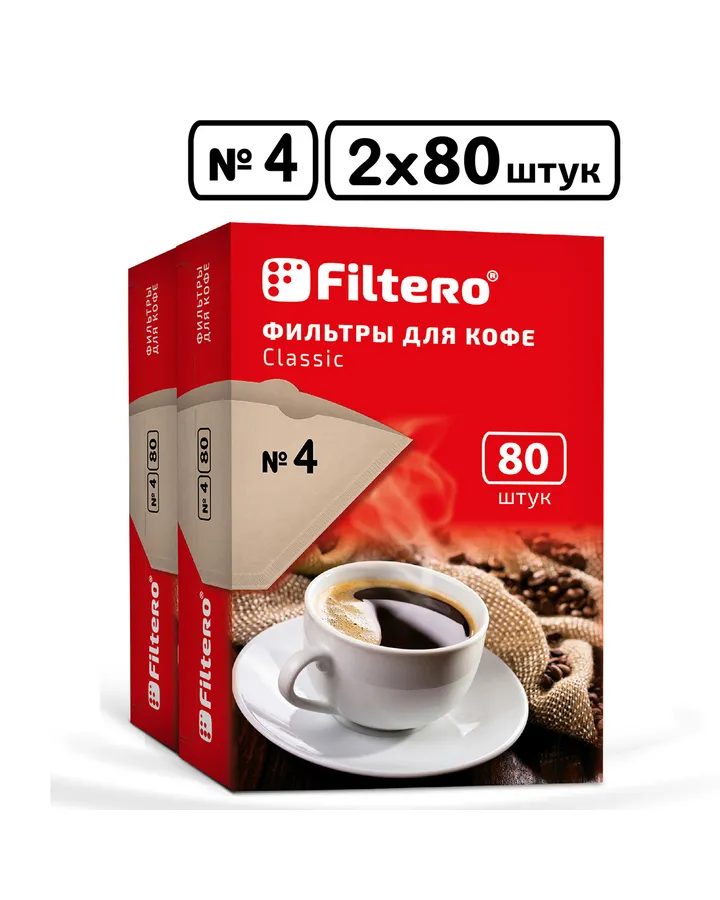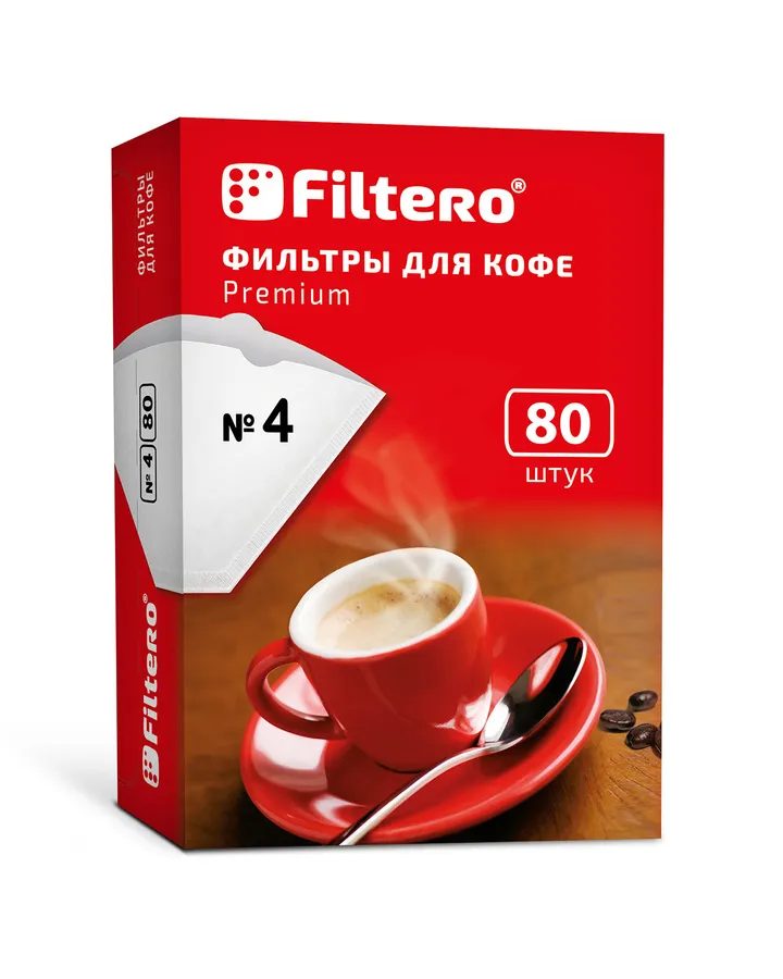 Комплект фильтров Filtero для кофеварки №4/80шт белые Premium