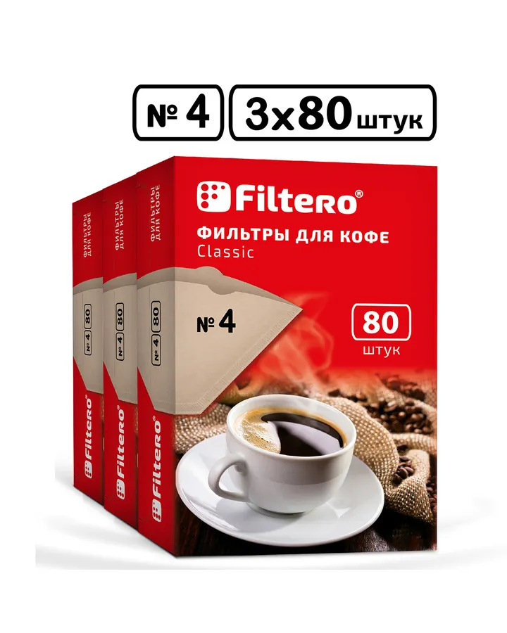 Комплект фильтров Filtero для кофеварки №4/240шт коричневые Classic