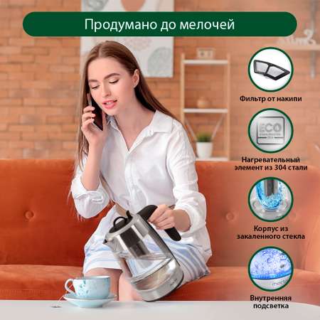 Чайник просто супер👍🏻Не ожидала даже, что будет такой добротный и классный чайник🫶Красивый,прочный,тихий,красивая подсветка,закипает очень быстро👍🏻Здорово что можно ставить заварник и заваривать чай,очень удобно👍🏻Цена🔥Рекомендую😉Берите,вы точно останетесь довольны☺️