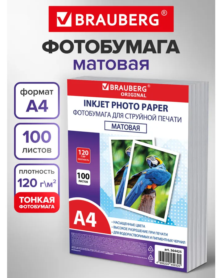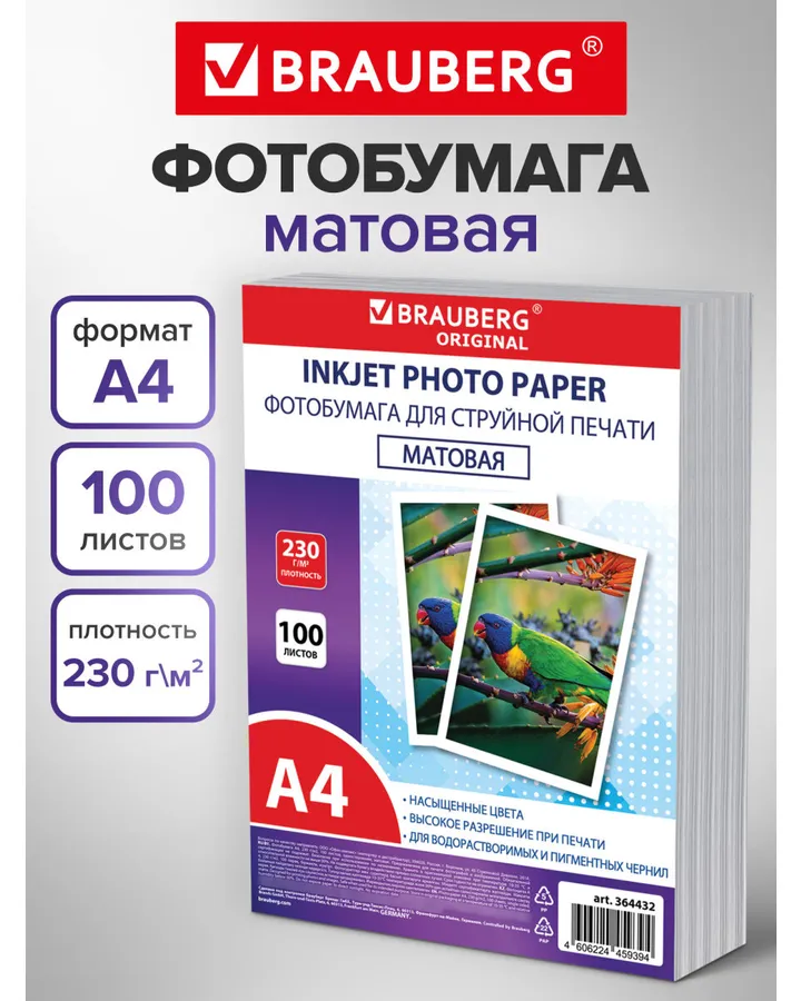 Фотобумага Brauberg матовая А4 набор 100 листов односторонняя