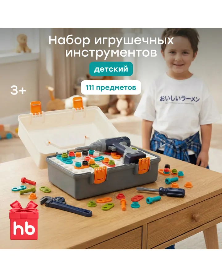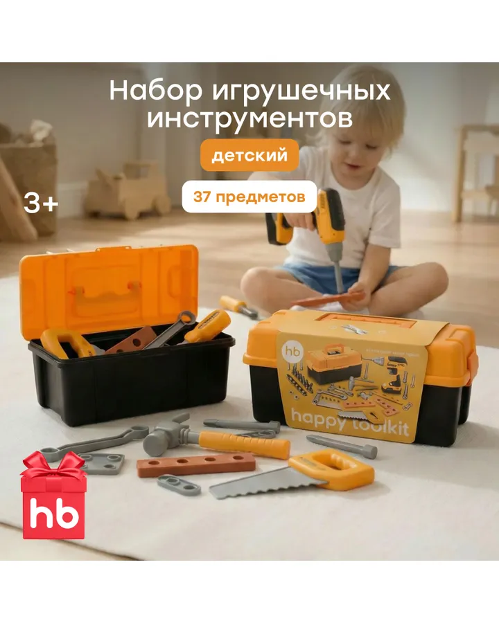 Игрушка Happy Baby Happy ToolkitКупили этот набор для своей дочки, так как хотелось бы, чтобы хоть и в игровой форме, но ребенок знал и понимал предназначение базовых инструментов и крепежа. Набор качественный, полностью соответствует характеристикам и фото. Подойдёт, чтобы играть самостоятельно, но конечно обязательно под присмотром взрослых. Я считаю, что набор не только для мальчиков, как принято считать в обществе, девочкам тоже может пригодиться умение чинить и справляться самостоятельно, хотя бы теорию, но знать нужно, как справиться с элементарным ремонтом.