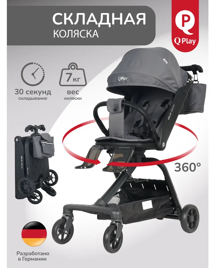 Коляска прогулочная QPLAY Qbook бежевыйПервое впечатление «вау». Да очень компактная, легкая, складывается просто в маленький чемоданчик, удобно что крутится сиденье, расклдывается. Купили для путешствий, думаю не подведет.