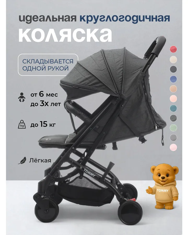 Коляска прогулочная TOMMY Victory черныйВсе понравилось , поошла огонь и воду !