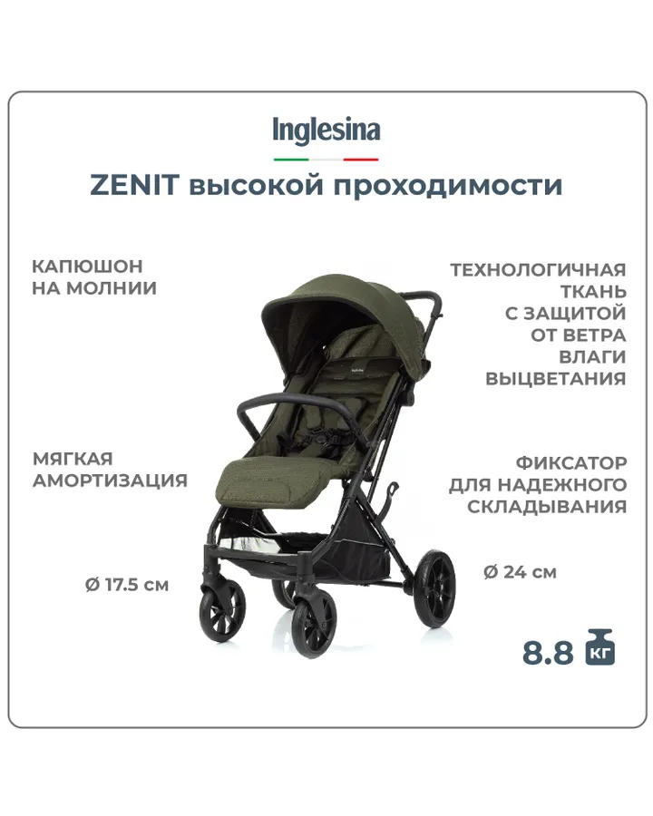 4Коляска прогулочная Inglesina Zenit Green зеленый