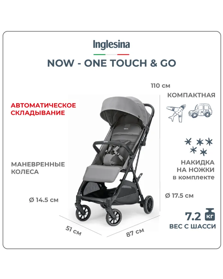 5Коляска прогулочная Inglesina Quid серыйОчень понравилась коляска, нам 7 месяцев, ребёнок хорошо сидит и спит
