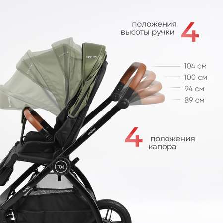5Коляска прогулочная Tomix Cosy черныйЭто будет длинный и самый полезный отзыв. Дорогие дамы, которые бояться купить эту коляску, все сюда. 1. Просто знайте, что от этой марки (tomix) коляска трость, такая же, только без перекидной ручки имеет рейтинг 4.9, потому что там нет вопросов у людей что они берут, а тут ожидание и реальность не совпалают. 2. Считайте что это коляска трость очень-очень хорошего качества, но у которой есть доп функция перекидной ручки. 3. ВСЕ коляски с перекидной ручкой имеют люфт это нормально, а не брак. Люфт не мешает и не чувствуется во время движения. Он небольшой. 4. Коляска не дребижжит, у нее просто нет амортизации, она жесткая, но едет отлично. 5. Из-за сдвоиных колес она чуть туже едет на переднем приводе, туже поворачивает и наоборот на заднем приводе (когда ребенок лицом к маме), она поворачивает быстрее, чем любая другая. 6 САМОЕ ГЛАВНОЕ! Недопонимание заднего привода. Девушки, эта функция нужна толькл ради того чтоб вы своего малыша видели и ехали по ровной дороге. Она не предназначена чтоб вы на задних крутящихся колесах преодолевали припятствия и бордюры - факт. Но если вы это хотите, то просто заблокируйте передние колеса, сделав коляску «классикой», без поворотных колес и будет вам счастье. В правильных руках, коляска будет вездеходом. 7. Когда ручку перекидываешь, то да, расстояние становится, чуть меньше у ног, мне не мешало с ростом 168. Мое предположение, что коляска подойдет людям до 175. 8. Для меня это 4ая коляска, первая была танк 3в1 с регул.ручкой, если у вас сейчас такая же, то придется привыкнуть к уровню ручки. Остальные иои коляски были без регулировки высоты и мне спокойно зашла эта коляска. Эту купила, как вторую, при чем катать я ее собираюсь всесезонно. На маркетплейсе видела несколько отзывов, где эта коляска прекрасно преодолевает заснеженную дорогу, с разными вариантами положения ручки. ЗАВЕРШЕНИЕ: коляска огонь, выглядит добротно, чувствуется качество и стиль, все свои функции она выполняет на 100%. Мамы, которые огорчены и считают, что коляска неуправляема, просто не подготовились к покупке и ожидали, что она во всех положениях будет ездить, как обычная коляска. Но коляска необычная))) надо понимать, что и как работает, тогда и вы будете рады покупке.