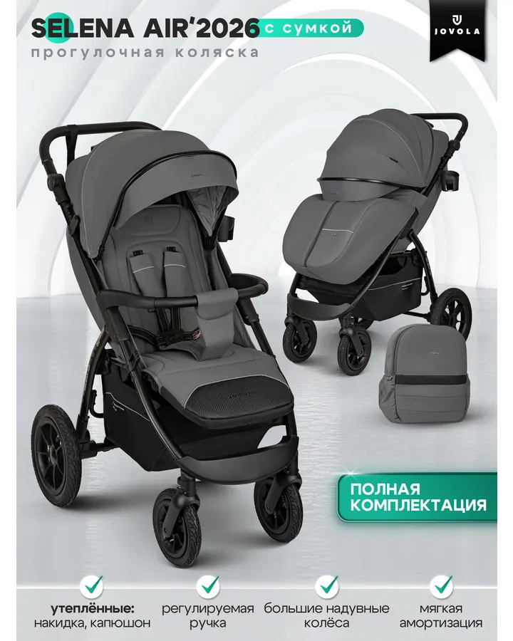 Коляска прогулочная JOVOLA SELENA Air 2025 с сумкой серыйПонравилась! В слякоть едет прилично.