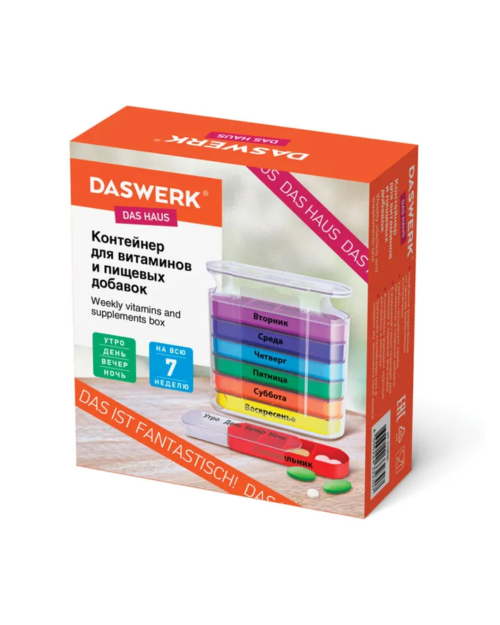 Таблетница DASWERK на неделю 4 приемаВообще классная штука! Теперь все витамины на месте.