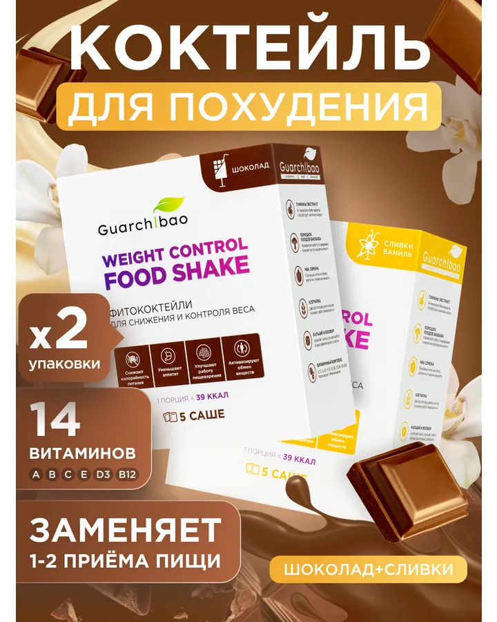 Фитококтейль белковый Guarchibao для похудения протеин сывороточный со вкусом Шоколада 2 упВкусно, конечно с молоком прям лучше чем с водой, получается а-ля коктейль из кафешки