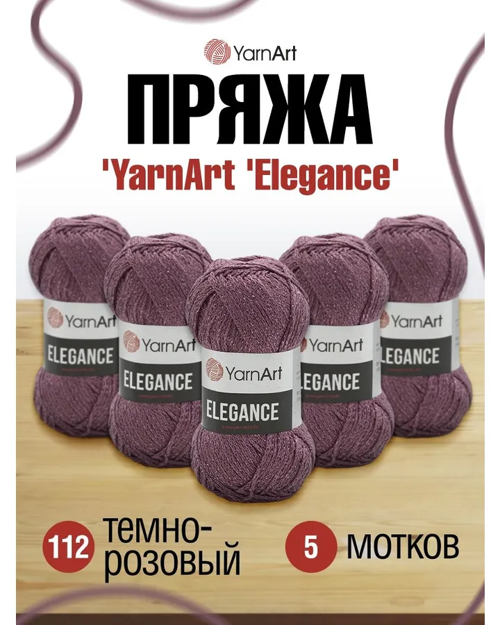 Пряжа YarnArt Elegance с люрексом 50 г 130 м 112 темно-розовый 5 мотков