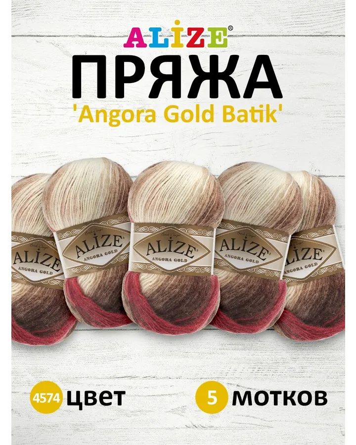 Пряжа Alize для вязания зимних вещей Angora Gold Batik 100 гр 550 м 5 мотков 4574 секционный