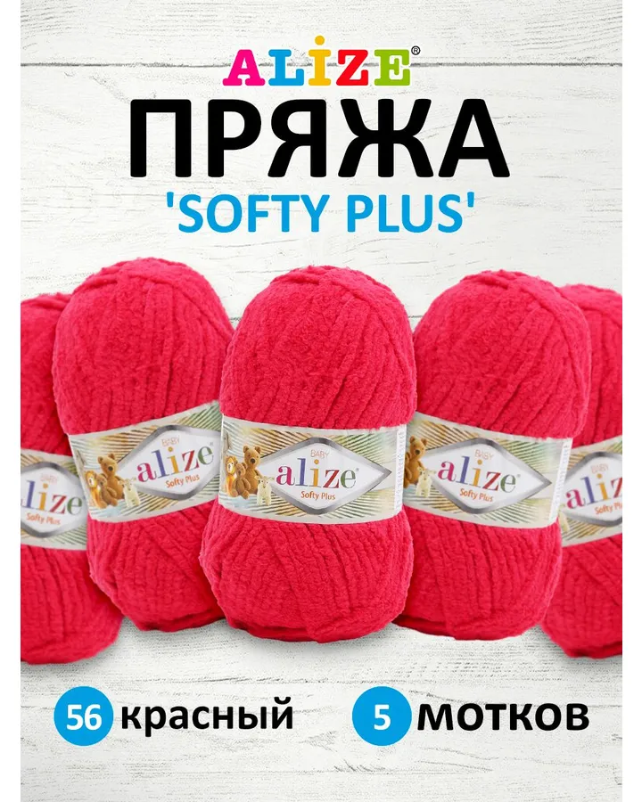 5Пряжа для вязания Alize softy plus 100 г 120 м микрополиэстер мягкая плюшевая 13 желтый 5 мотковВсё отлично
