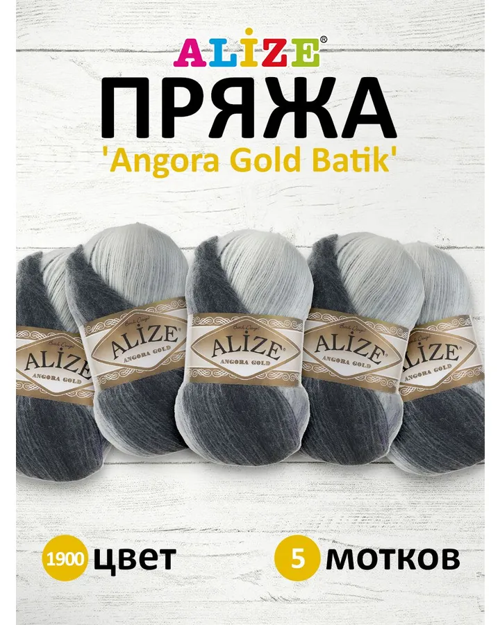 Пряжа Alize для вязания зимних вещей Angora Gold Batik 100 гр 550 м 5 мотков 1900 секционный