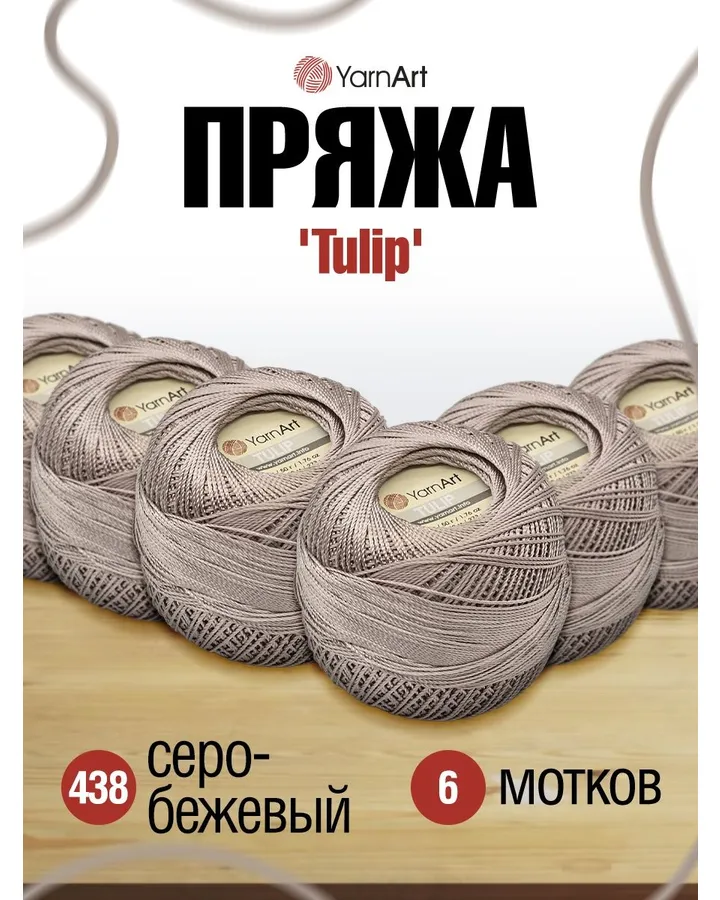 Пряжа YarnArt Tulip переливающаяся для вязания летних вещей 50 г 250 м 438 серо-бежевый 6 мотков