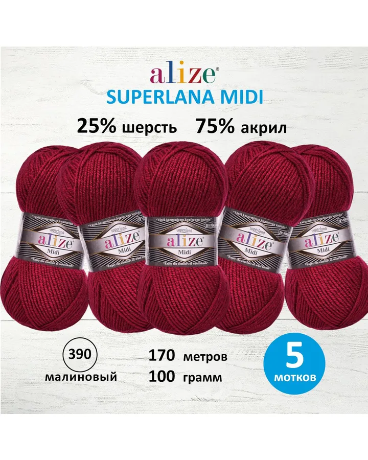 Пряжа Alize теплая для вязания шарфов шапок Superlana klasik 100г 280м 5 шт 798 бугенвиллия