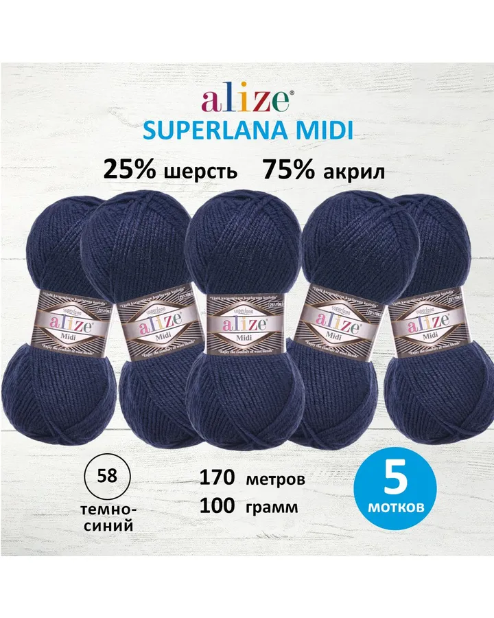 Пряжа Alize теплая для вязания шарфов шапок Superlana klasik 100г 280м 5 шт 203 джинс меланж