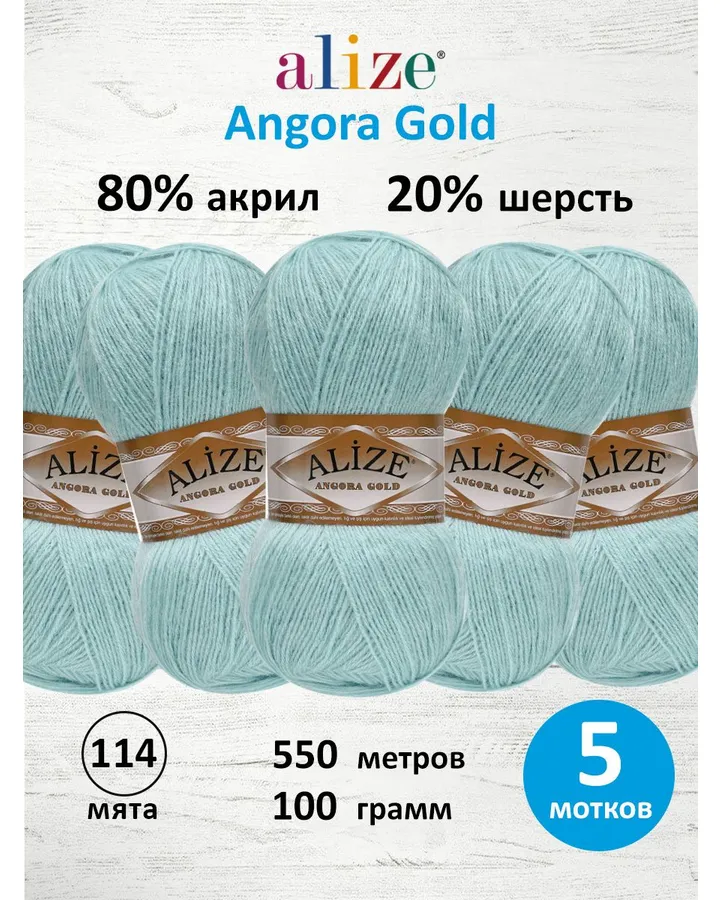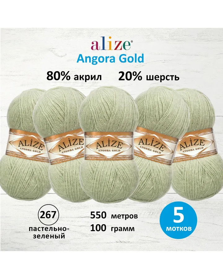 Пряжа Alize теплая для шарфов кардиганов Angora Gold 100г 550м 5 мотков 180 зеленый миндаль