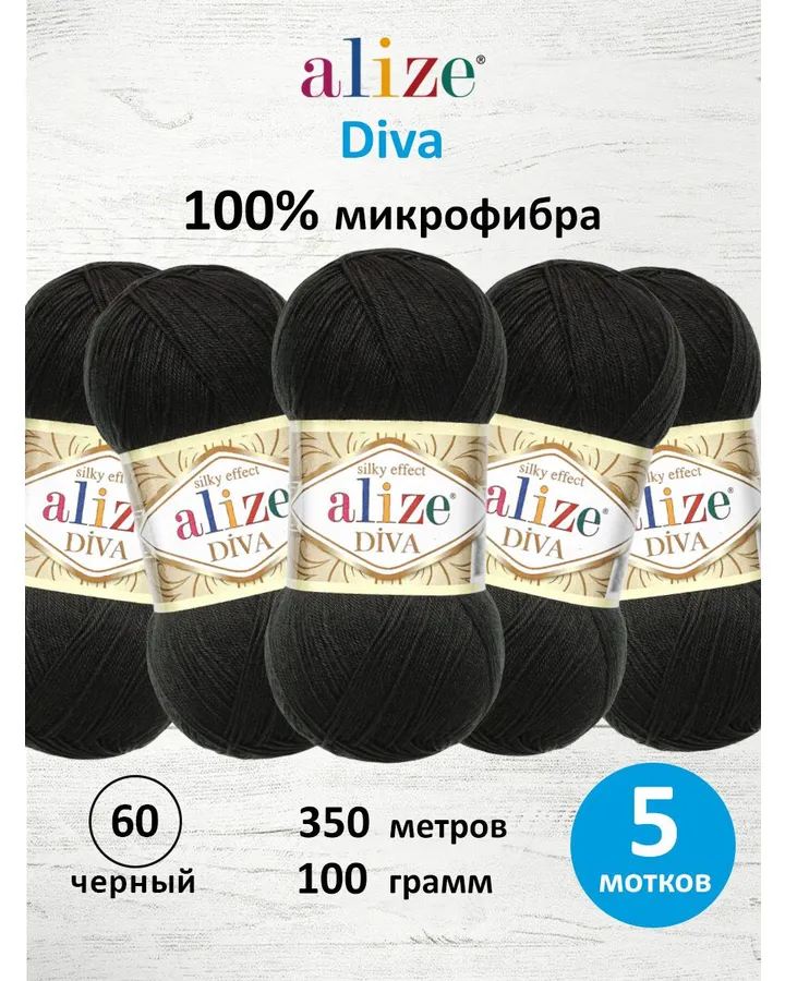 Пряжа Alize для вязания универсальная Diva микрофибра 100 гр 350 м 5 мотков 353 ярко-синий