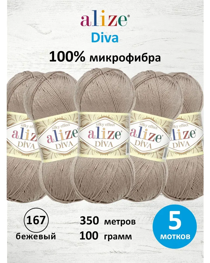Пряжа Alize для вязания универсальная легкая Diva микрофибра 100г 350 м 5 мотков 62 молочный
