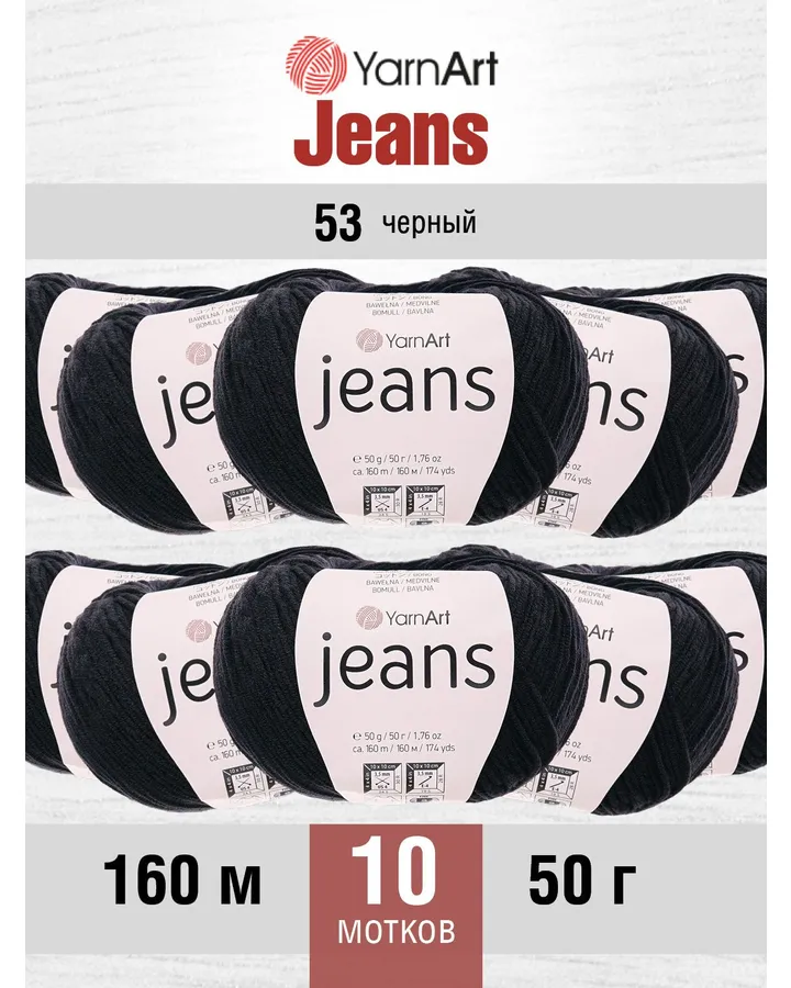 Пряжа YarnArt Jeans универсальная 50 г 160 м 53 черный, 10 мотков