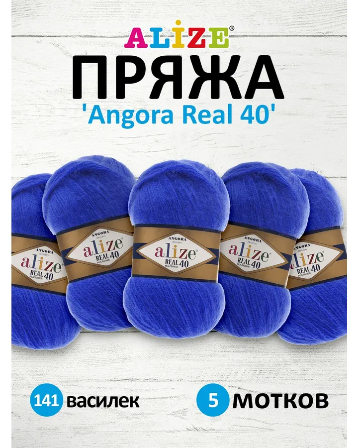 Пряжа Alize мягкая для вязания Angora real 40 100 гр 430 м 5 мотков 141 василек