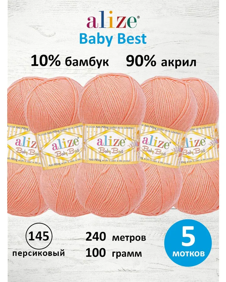 Пряжа для вязания Alize baby best бамбук акрил с эффектом антипиллинг 100 г 240 м 145 персиковый 5 мотков