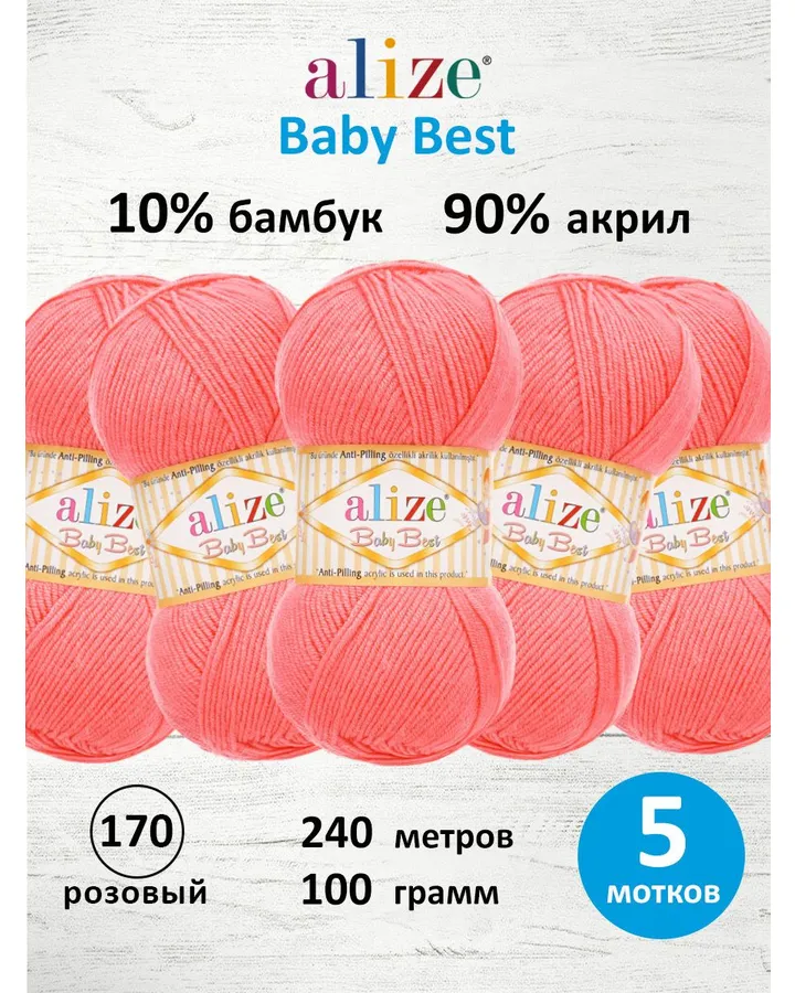 Пряжа для вязания Alize baby best бамбук акрил с эффектом антипиллинг 100 г 240 м 170 розовый 5 мотков
