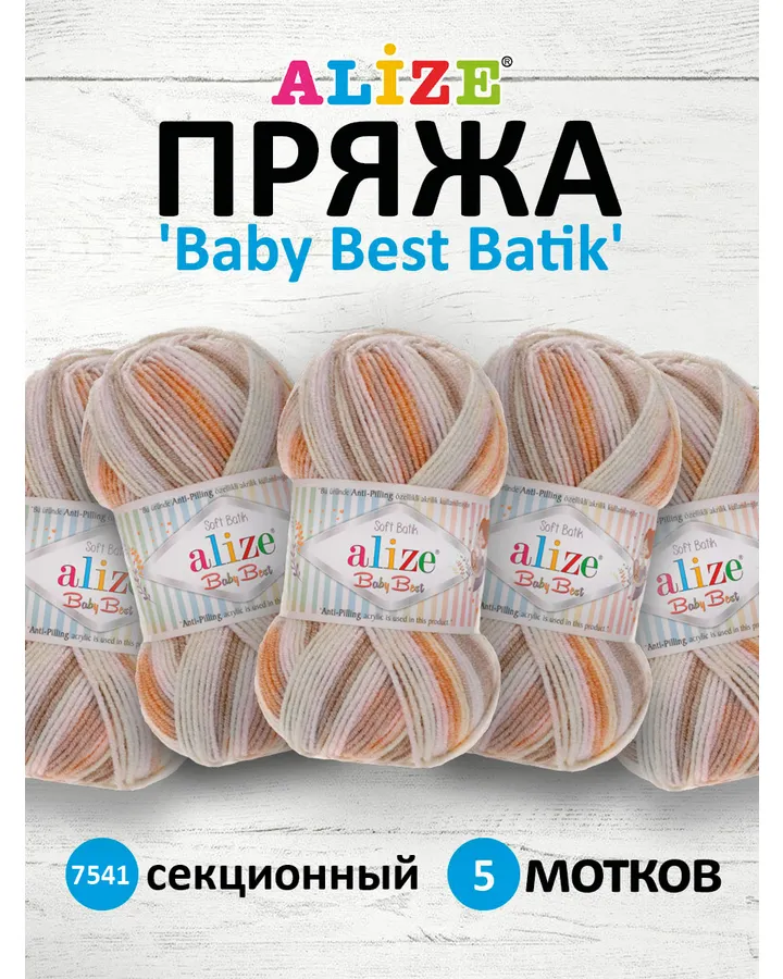 Пряжа для вязания Alize baby best batik бамбук акрил с эффектом антипиллинг 100 г 240 м 7541 секционный 5 мотков