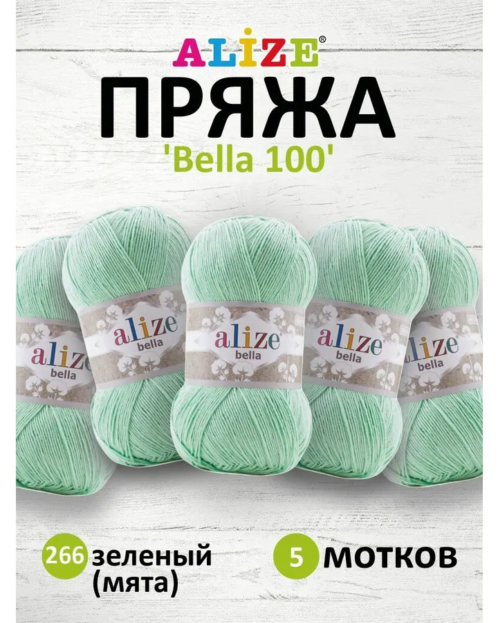 Пряжа Alize для теплой одежды Bella 100 100 гр 360 м 100% хлопок 5 мотков 266 зеленый
