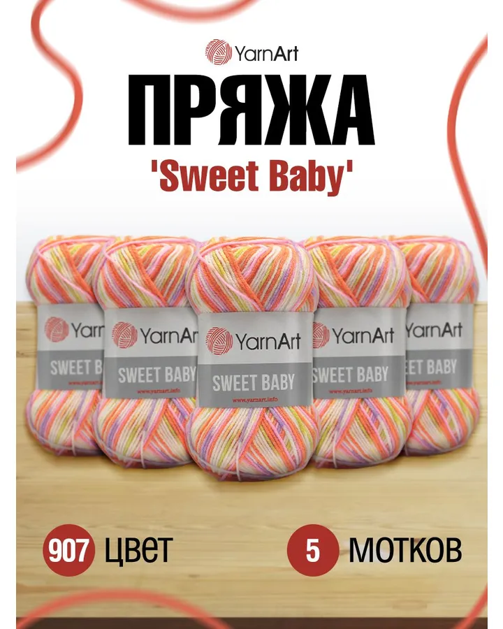 Пряжа для вязания YarnArt Sweet Baby 100 гр 300 м акрил тонкая детская 5 мотков цвет 905