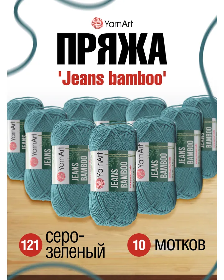 Пряжа для вязания YarnArt Jeans bamboo 50 гр 150 м бамбук полиакрил мягкая матовая 10 мотков 128 серый