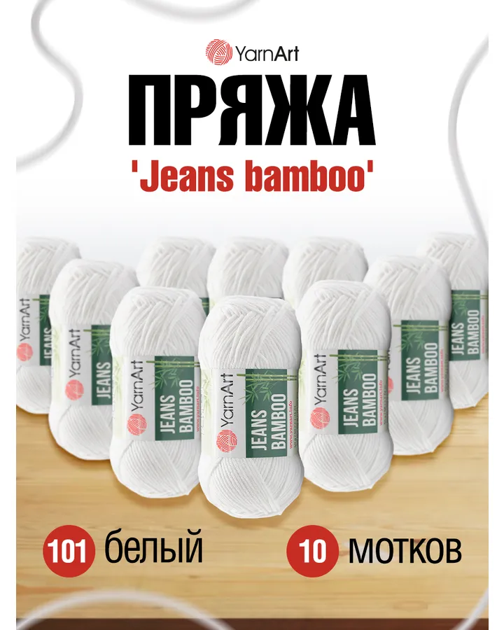 Пряжа для вязания YarnArt Jeans bamboo 50 гр 150 м бамбук полиакрил мягкая матовая 10 мотков 101 белый