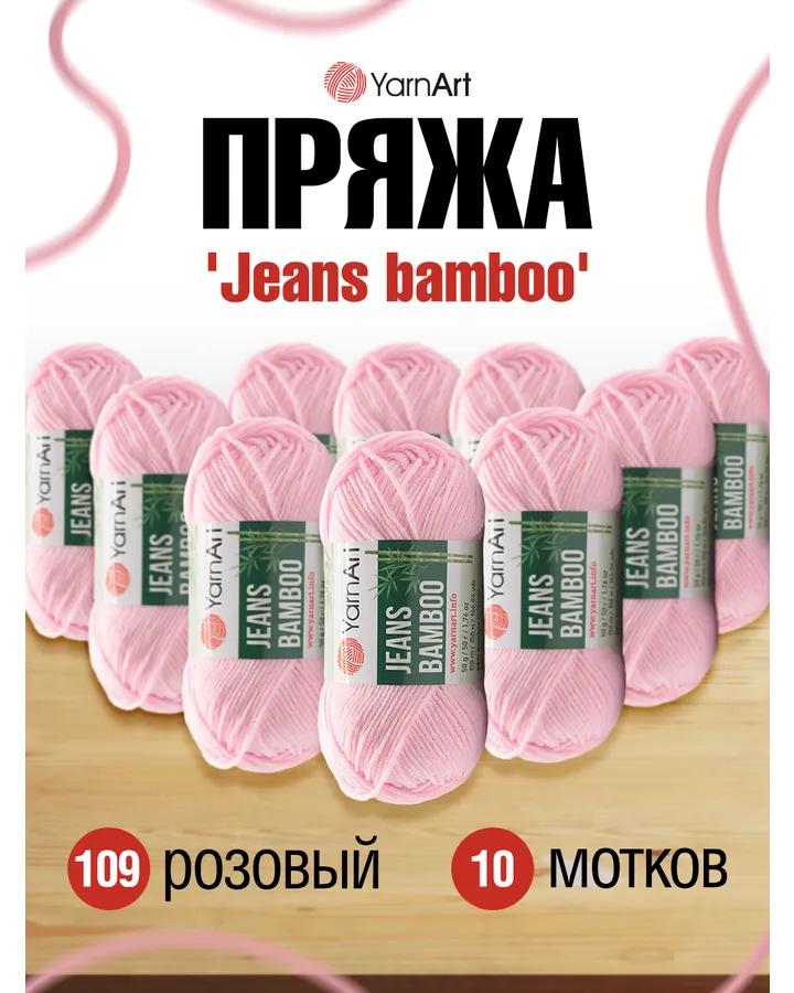 Пряжа для вязания YarnArt Jeans bamboo 50 гр 150 м бамбук полиакрил мягкая матовая 10 мотков 109 розовый