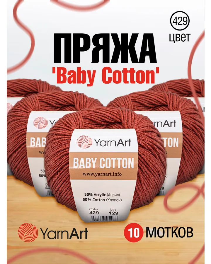 Пряжа для вязания YarnArt Baby Cotton 50гр 165 м хлопок акрил детская 10 мотков 426 красный