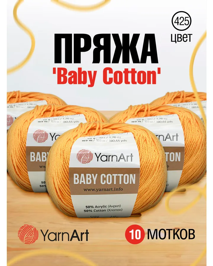 Пряжа для вязания YarnArt Baby Cotton 50гр 165 м хлопок акрил детская 10 мотков 425 темно-желтый