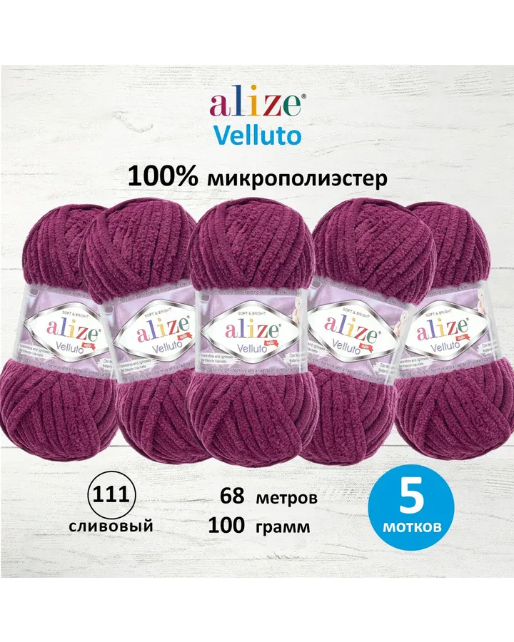 Пряжа для вязания Alize velluto 100 гр 68 м микрополиэстер мягкая велюровая 111 сливовый 5 мотков