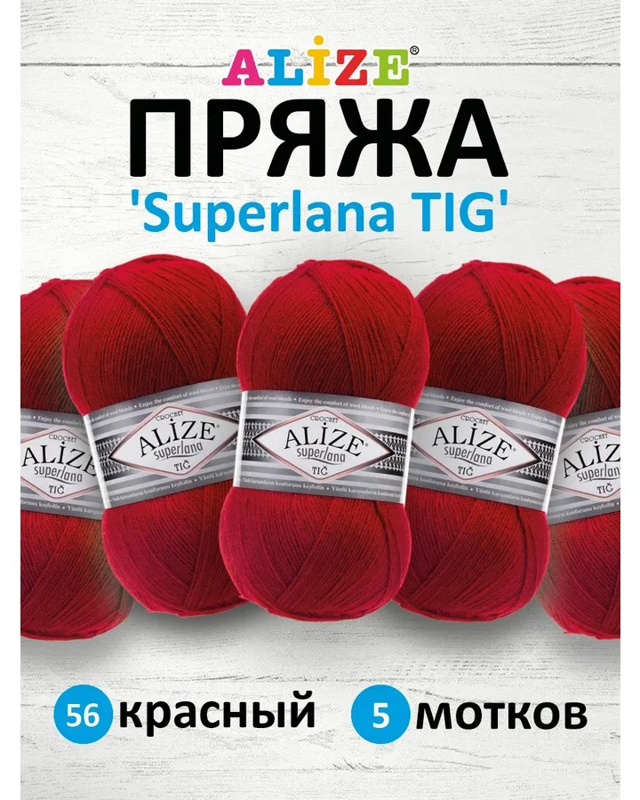 Пряжа для вязания YarnArt Baby 50 гр 150 м акрил мягкая детская 5 мотков 156 красный