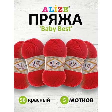 Пряжа для вязания Alize baby best бамбук акрил с эффектом антипиллинг 100 г 240 м 56 красный 5 мотков