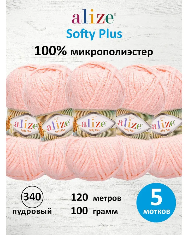 Пряжа для вязания Alize softy plus 100 г 120 м микрополиэстер мягкая плюшевая 340 пудровый 5 мотков
