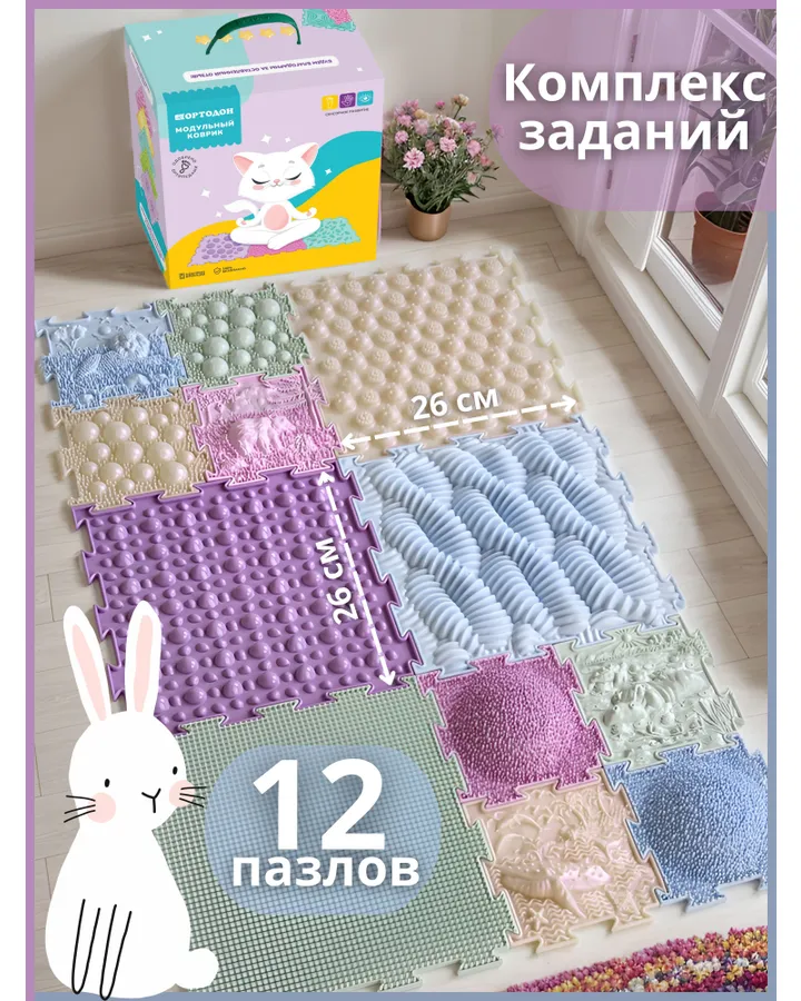 Коврик-пазл Ортодон массажный развивающий детский 26 x 220 см