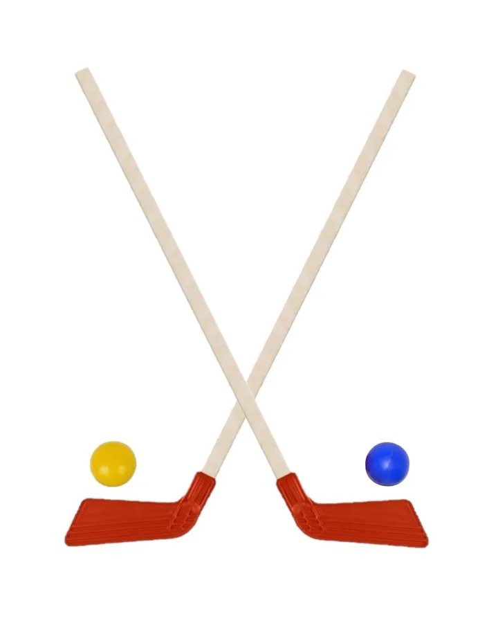Набор для хоккея Задира Клюшка хоккейная детская 2 шт красные + шайба + мячик