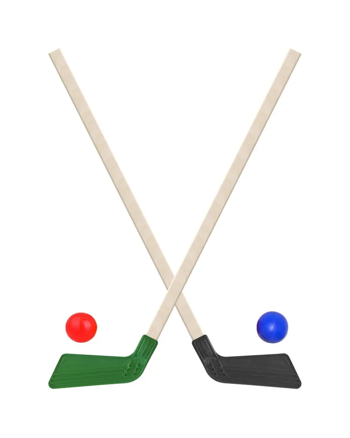 Набор для хоккея Задира Клюшка хоккейная детская 2 шт черная + зеленая + 2 мяча