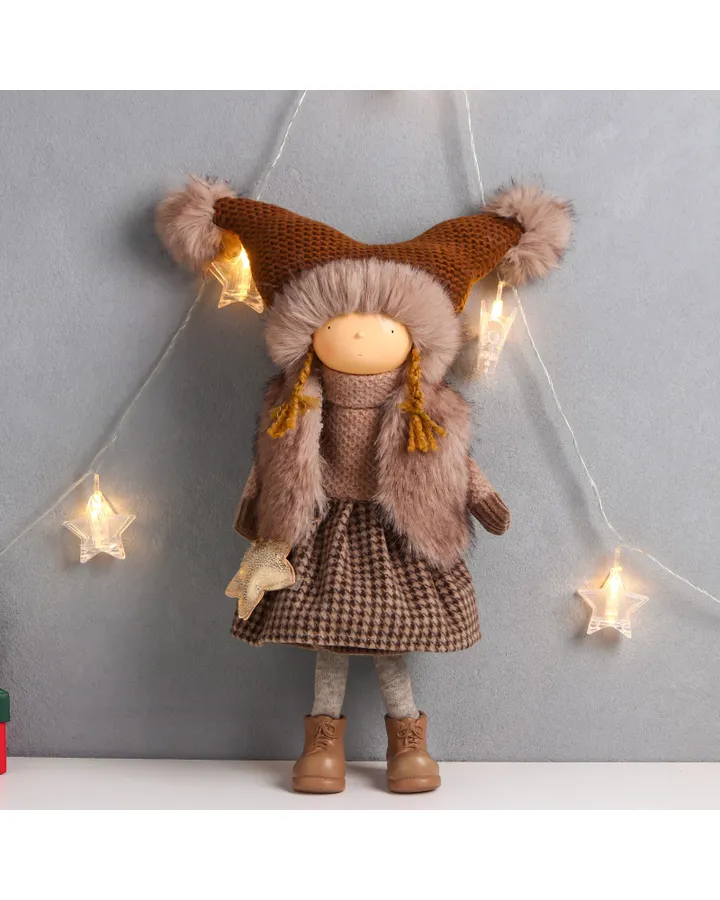 Кукла интерьерная Зимнее волшебство «Девчонка пухлая в шапке с рожками» 43х20х11 см