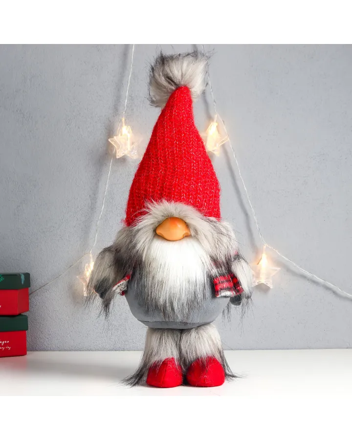Кукла интерьерная Зимнее волшебство «Дед Мороз в полосатых гетрах и сером колпаке» 48 см