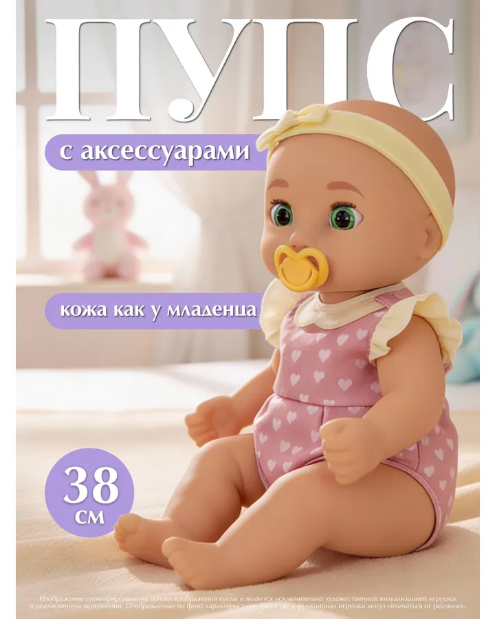 Хорошая кукла. Мягкая, приятная на ощупь. Ручки и ножки гнутся. Глазки закрываются. При нажатии на живот - дышит. Ребенку 2,5 очень понравилась.