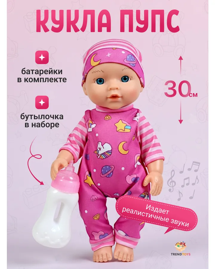 4Кукла пупс TrendToysВ общем кукла неплохая ,конечно звук не очень чёткий мама и папа говорит хорошо ,а вот плачет будто-то хрипит