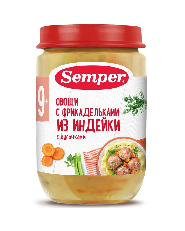 Пюре Semper Фрикадельки-овощи-индейка с 9 мес 190 г